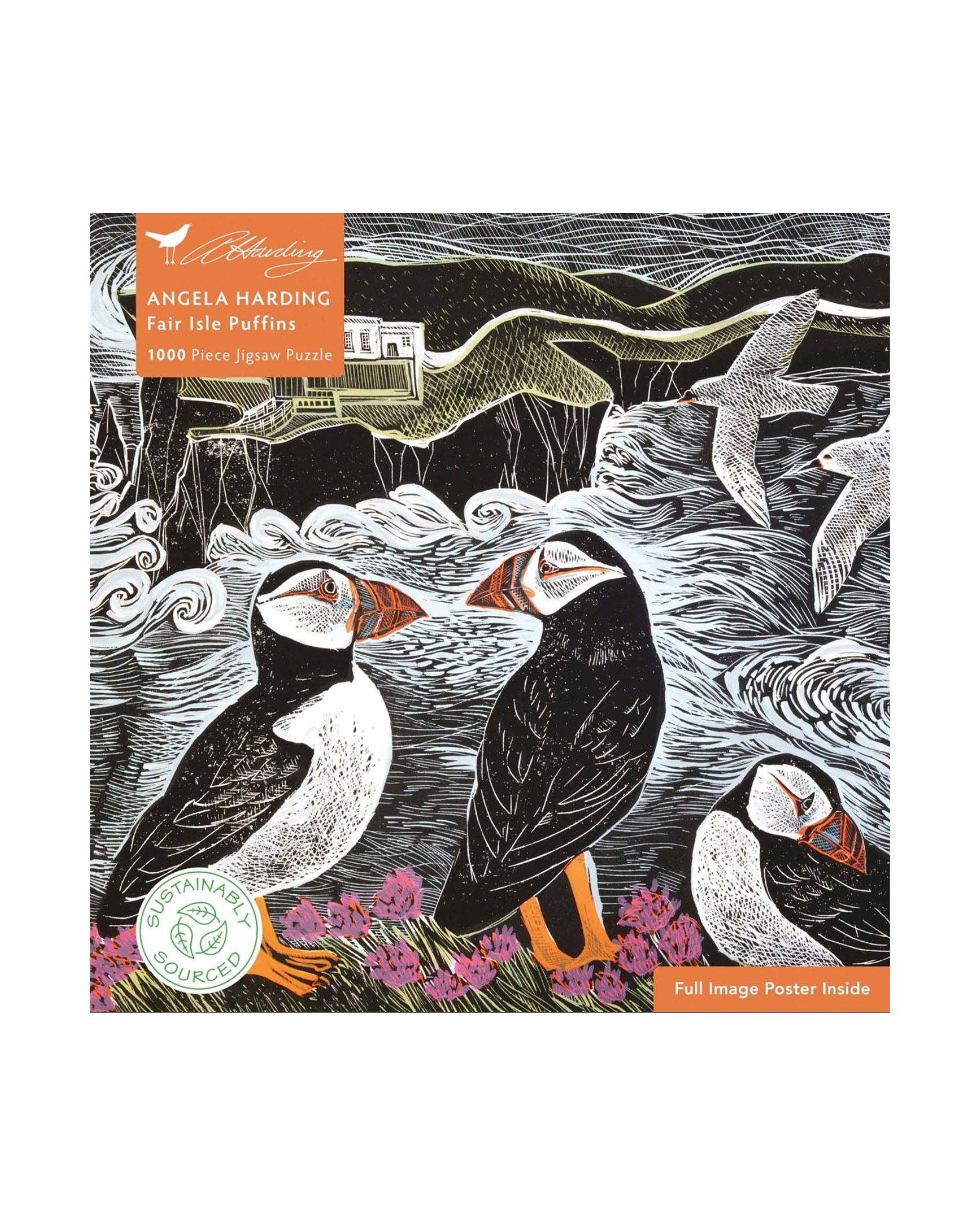 A challenging 1000 piece jigsaw featuring charming puffins in a coastal setting by Rutlan-based printmaker Angela Harding.