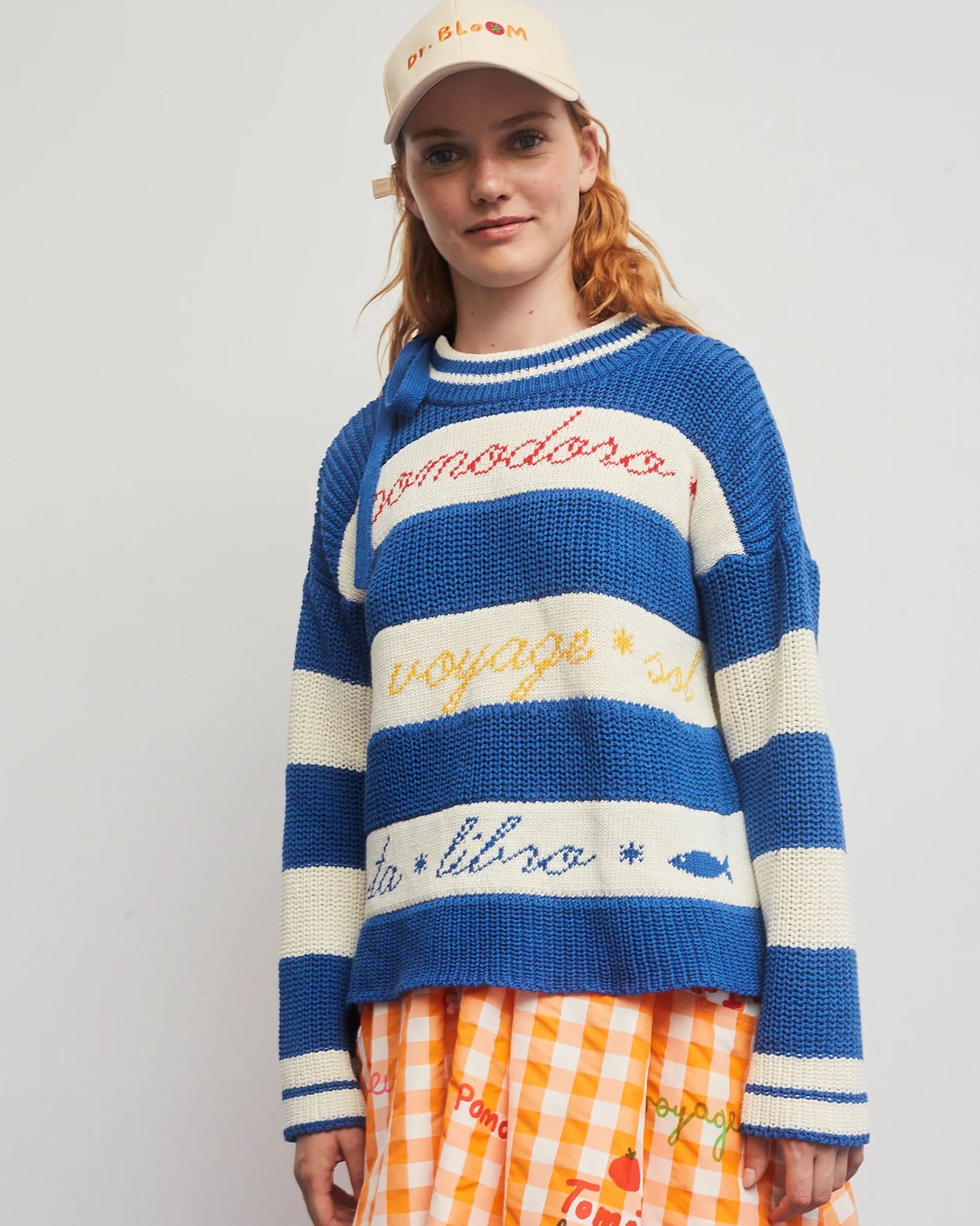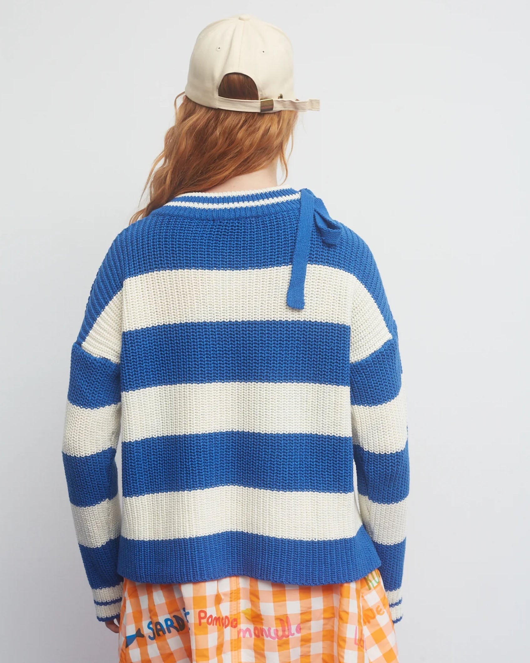 A chunky blue and white stripe knit from Spanish brand Dr. Bloom.