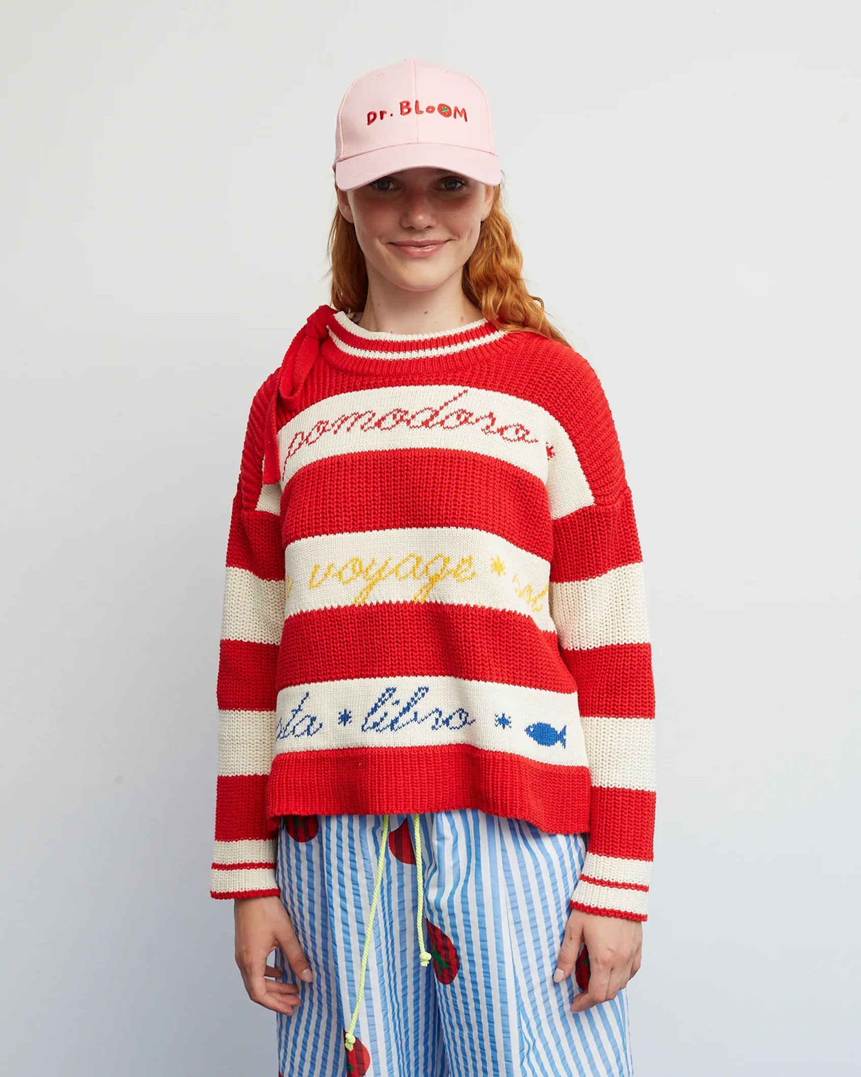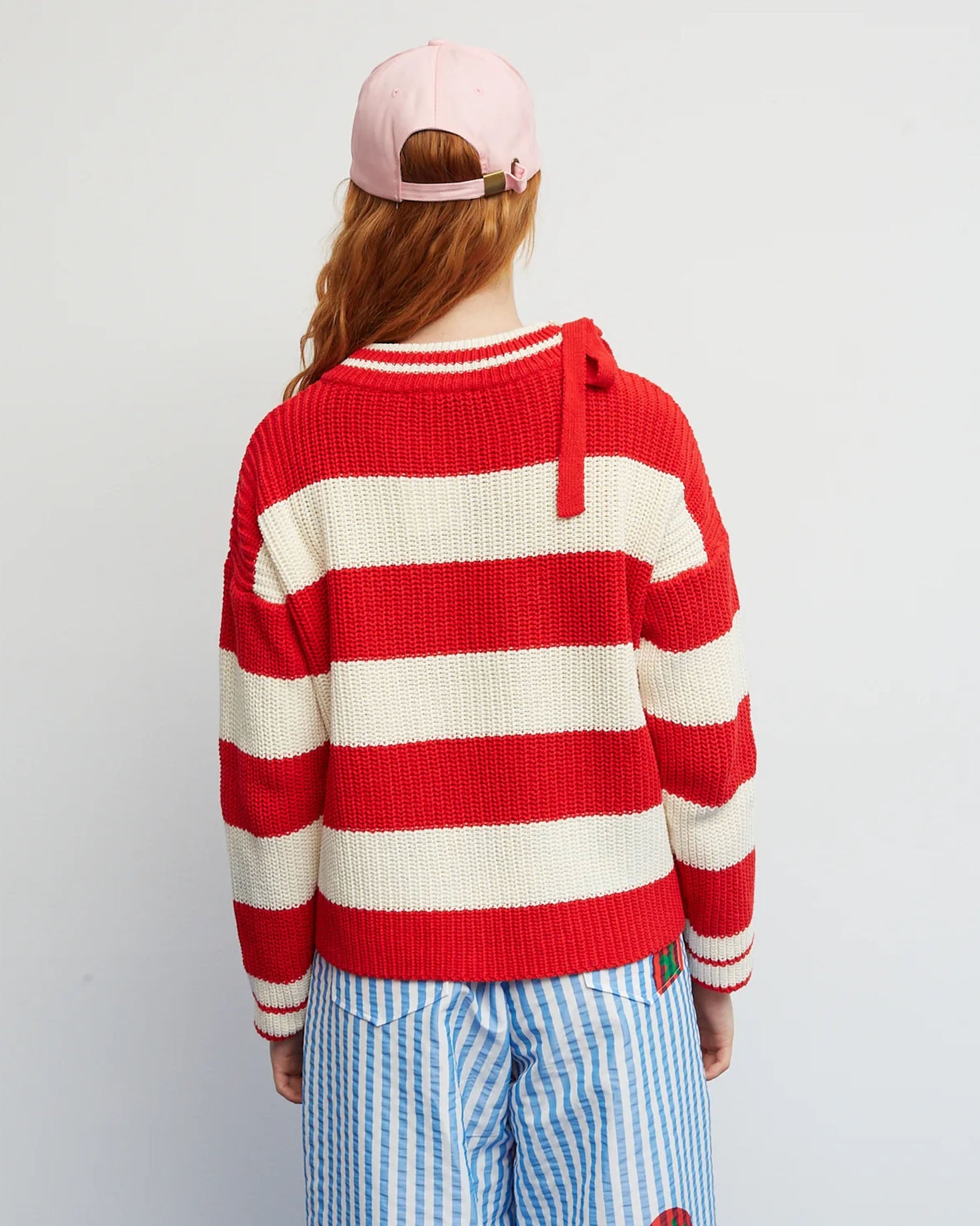 A chunky red and white stripe knit from Spanish brand Dr. Bloom.