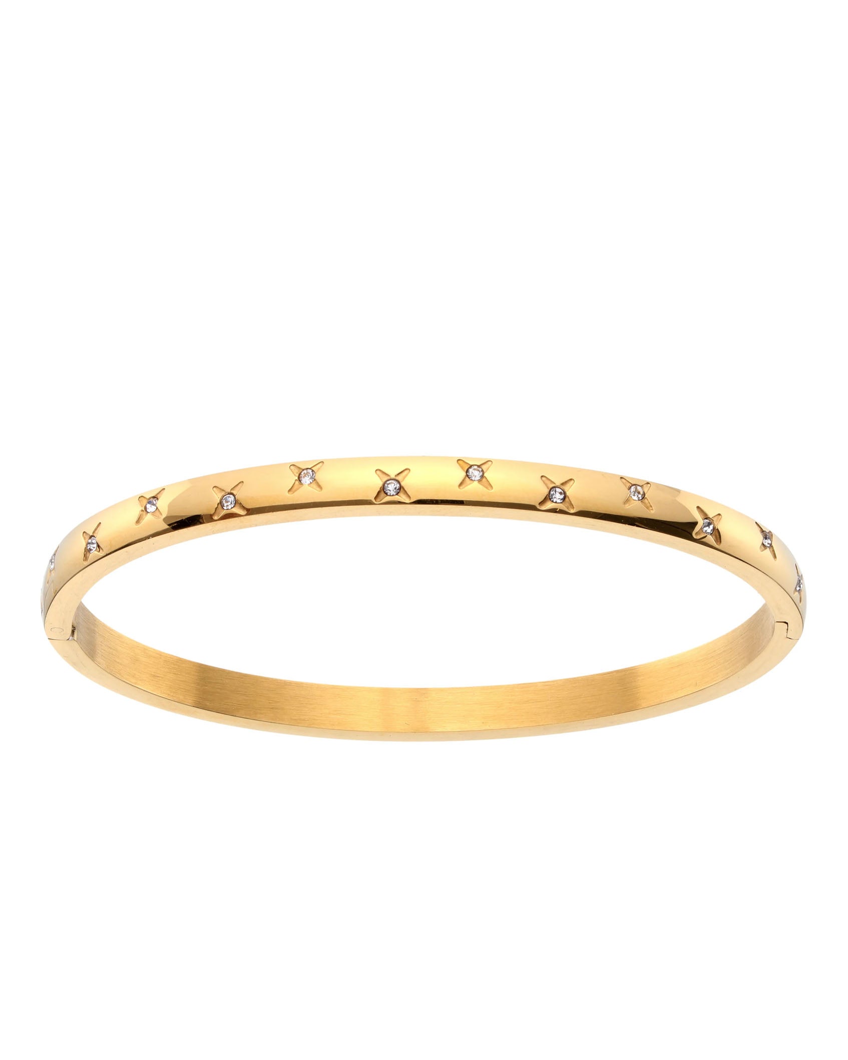 Featuring delicate all-over star engravings, each accented with a sparkling gemstone for just the right amount of shine.