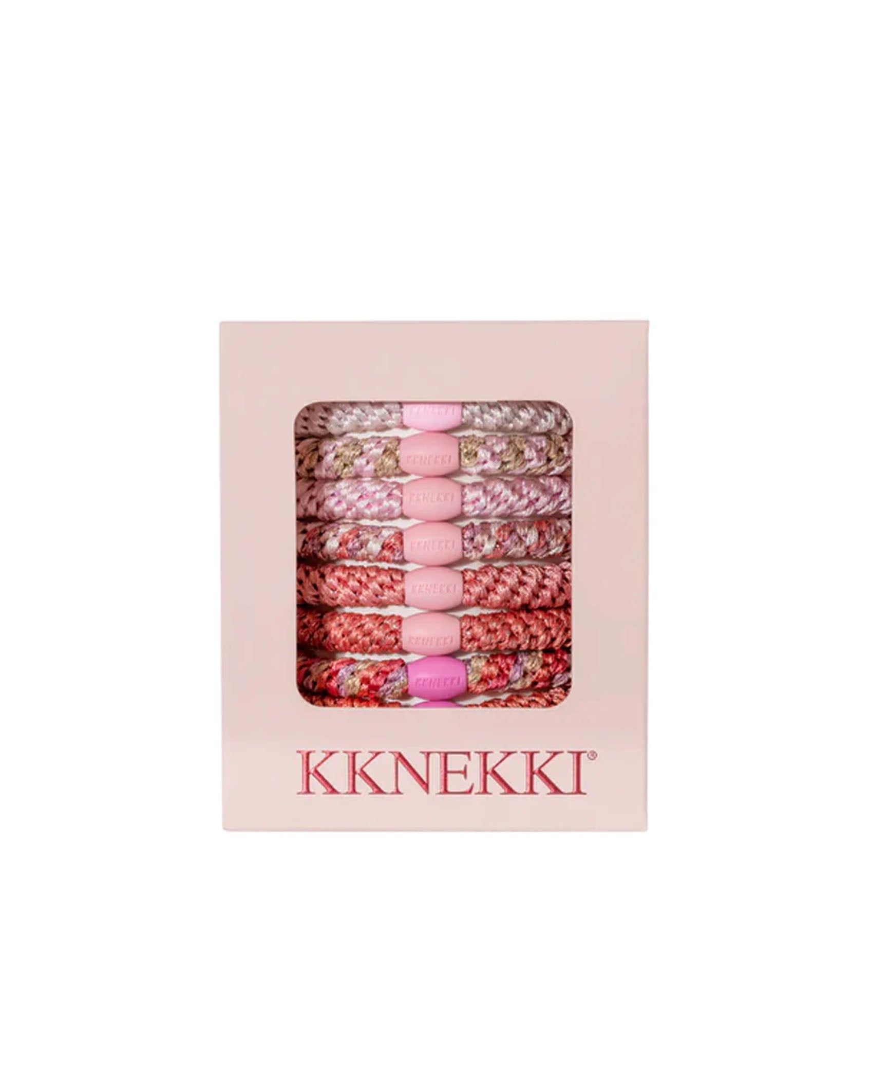 Each gift box comes with 8 chunky hairbands in delicate shades of pink with a touch of gold, bringing a feminine and sophisticated feel.