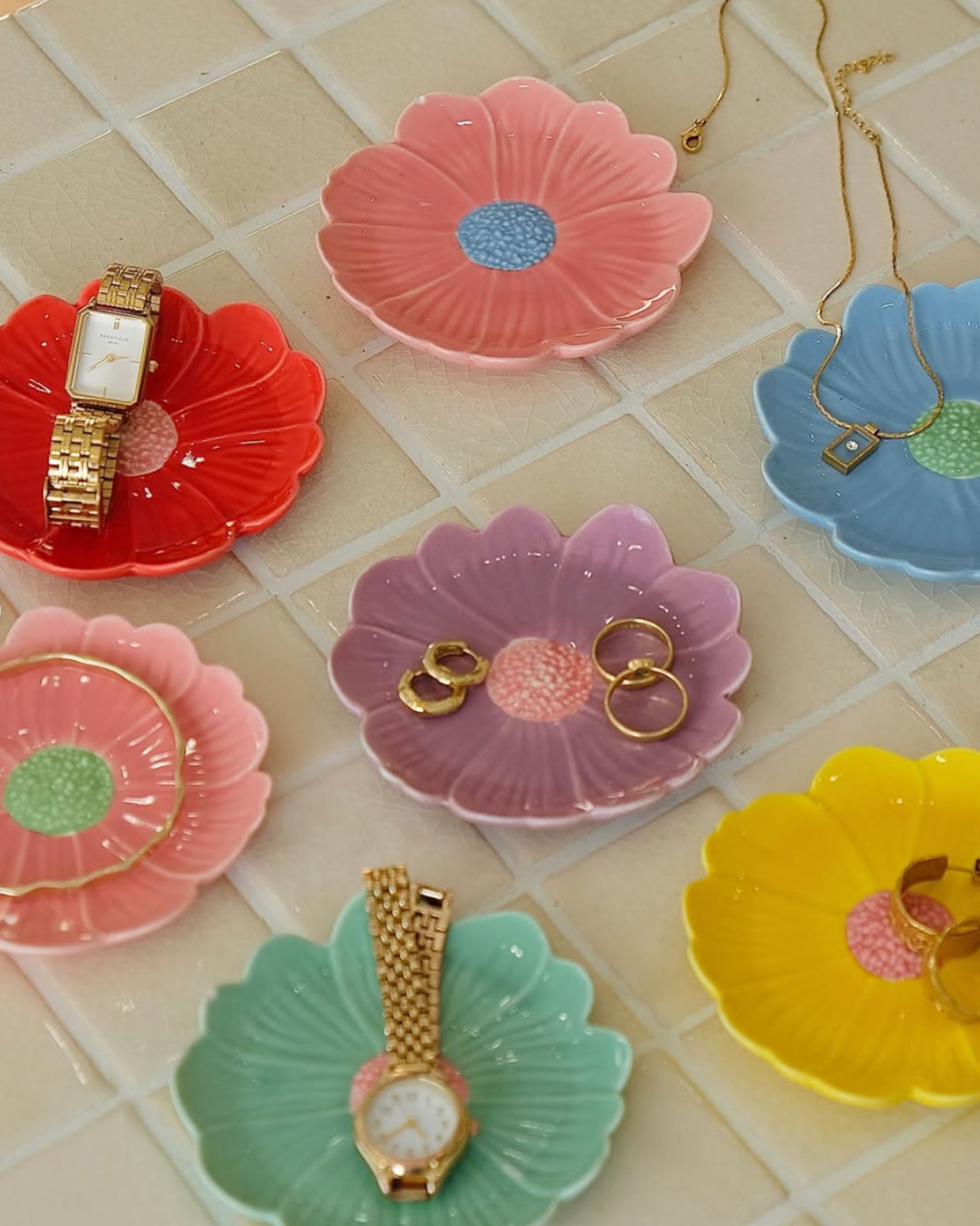 Mini floral trinket plates in a choice of colourways. Each piece is individually made, so no 2 are the exact same.