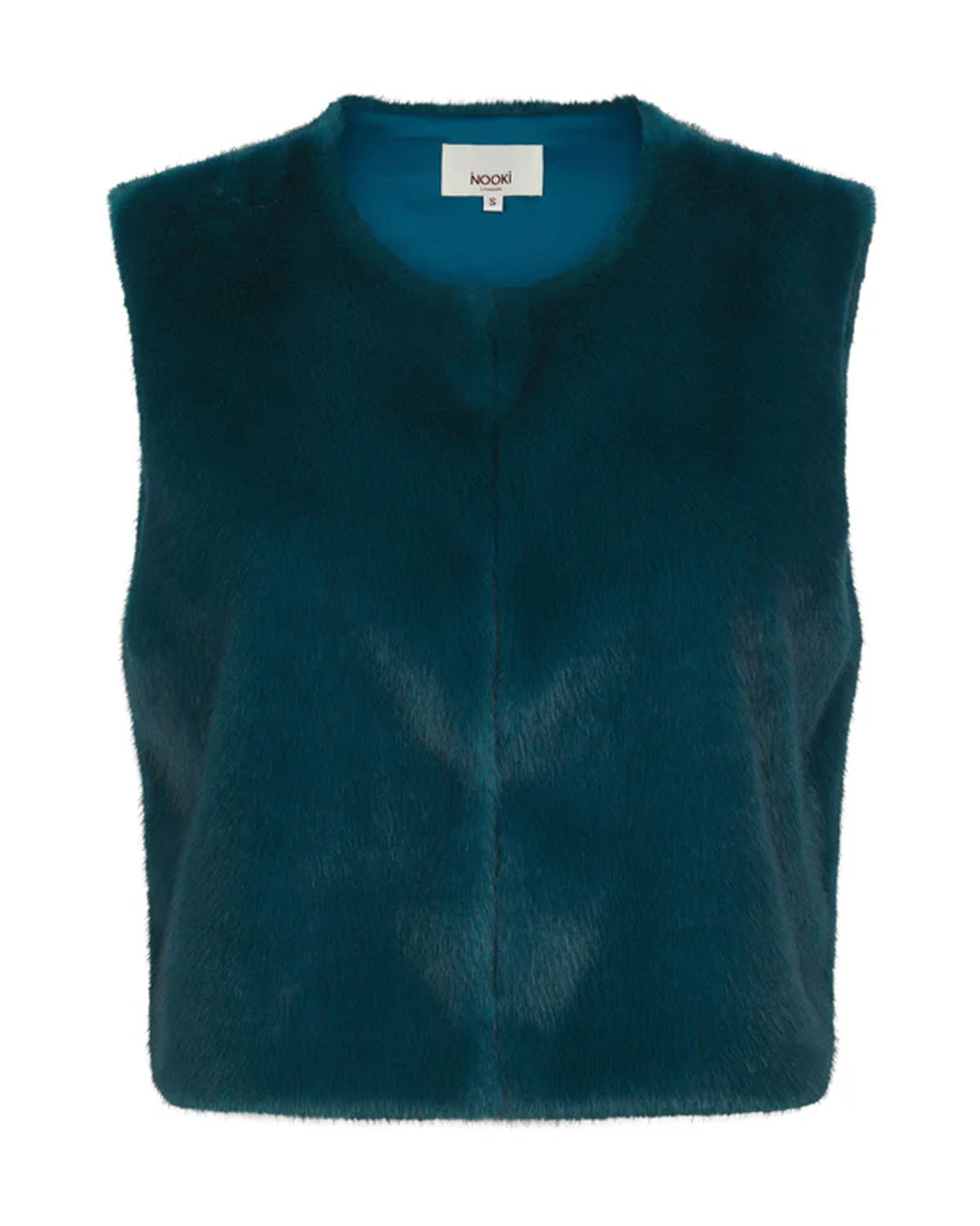 Faux fur gilet from Nooki.Made in a rich, teal colourway. The gilet has a cropped fit - looks fab over a dress or blouse.