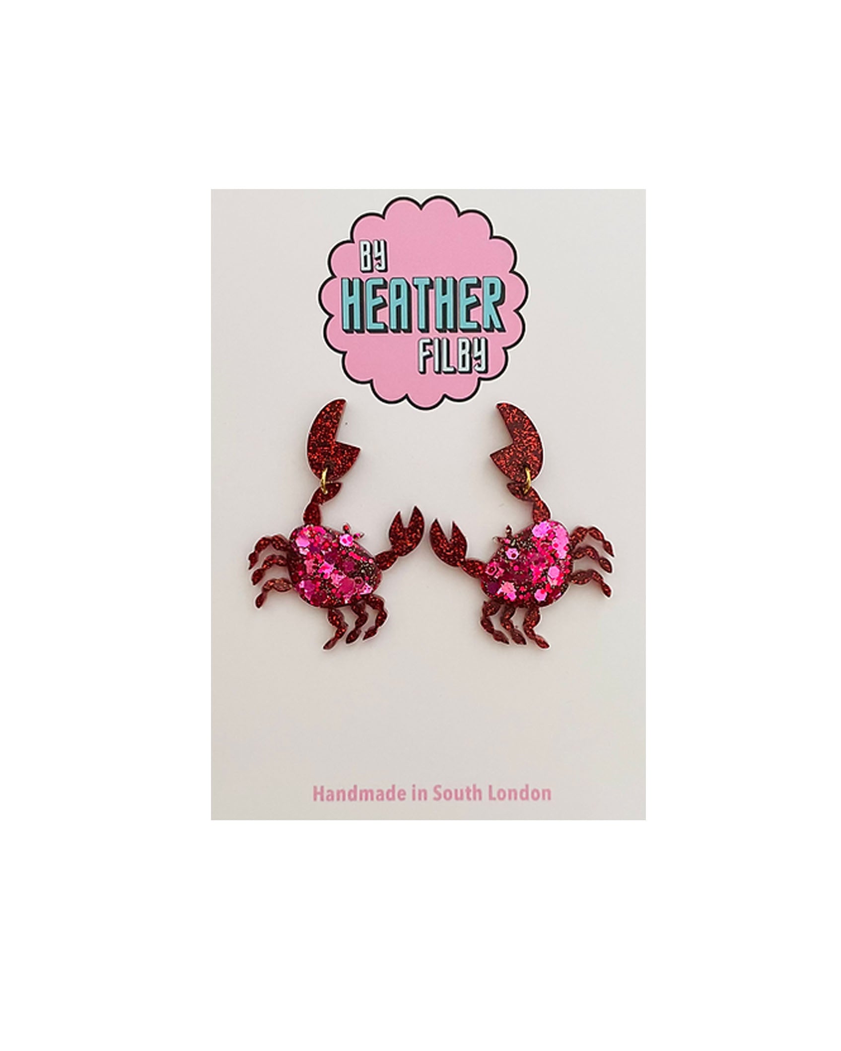 Large sparkly Crab earrings made by artist Heather Gilby.